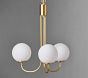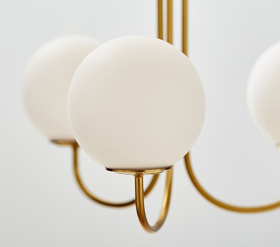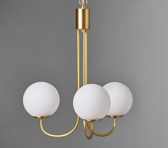 Learn MoreThree glowing glass orbs rest upon upturned brass arms, giving this chandelier its mid-century charm.