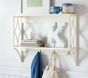 - With mantel-like design and a row of hooks, this shelving is classically styled and efficient.