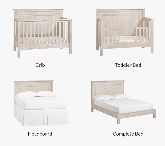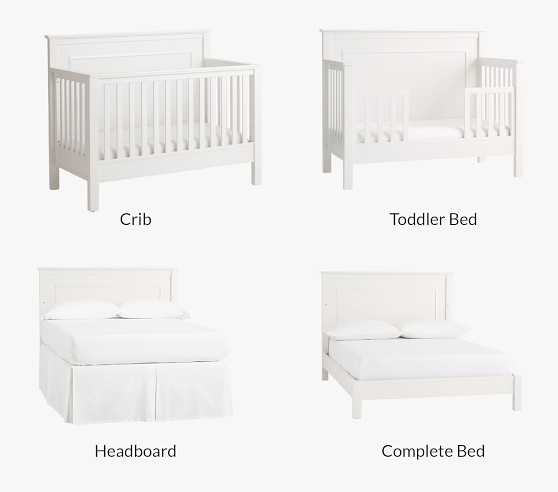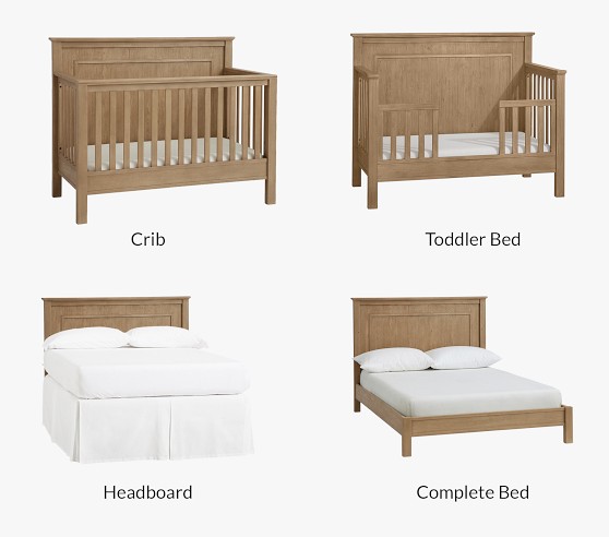 - Fillmore crib converts in the following ways: (1) Crib; (2) Toddler bed with guardrail (conversion kit sold separately); (3) Full-sized bed with headboard only (metal bed frame sold separately); (4) Full-sized complete bed with headboard, footboard and siderails (full bed conversion kit sold separately).