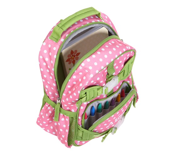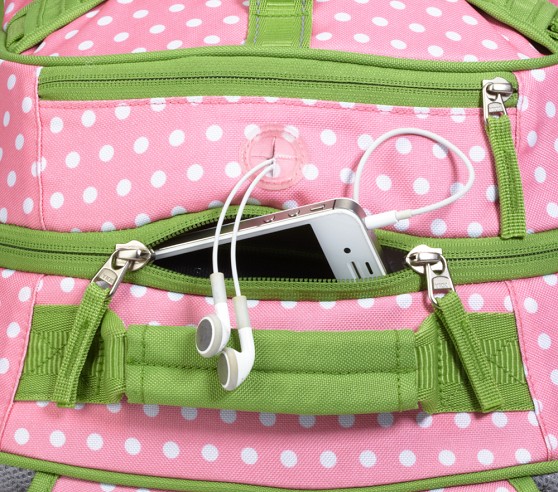 - Small, Large, and Rolling backpacks feature an MP3 player pocket cutout for headphone cords.