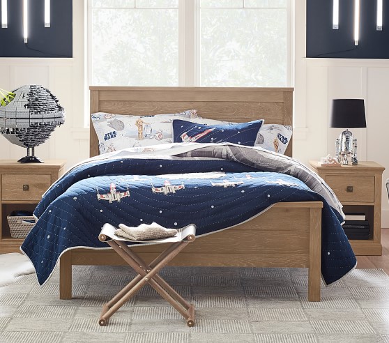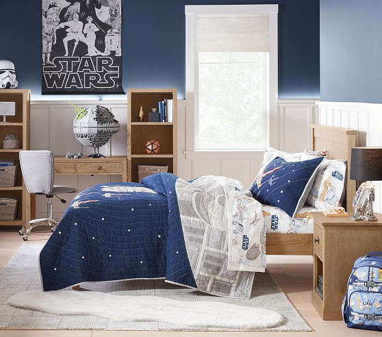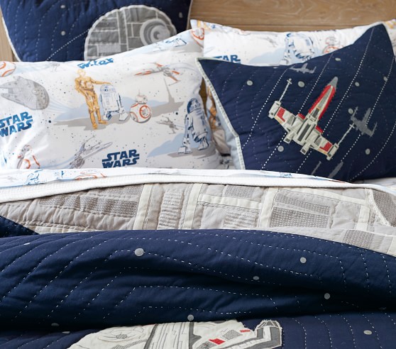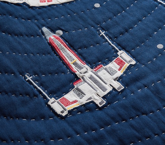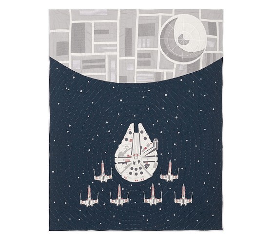 Learn MoreBring intergalactic design to their sleep space with this cozy all-cotton quilt. Featuring the Millennium Falcon™ and a platoon of X-Wing™ starfighters, it boasts an iconic Star Wars™ style.