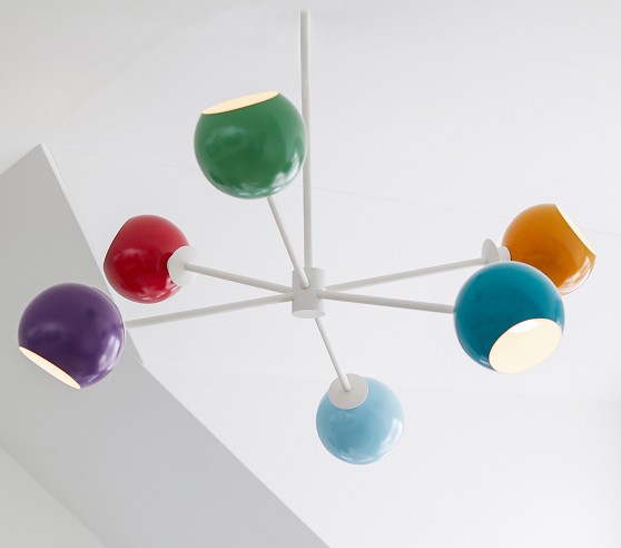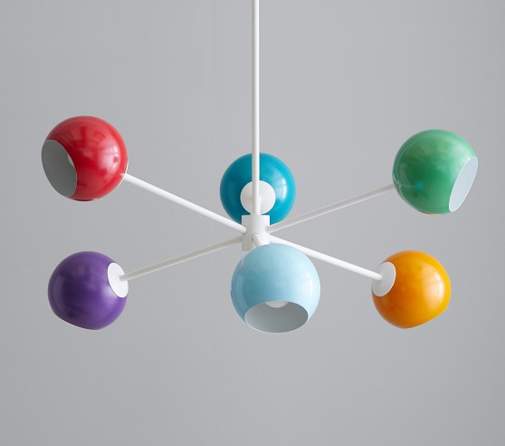 Learn MoreThe classic Sputnik chandelier gets a kid-approved update! This pendant wakes up a nursery or play space with its modern rainbow palette.