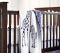 - Crib skirt is pure cotton percale with a printed ikat design.