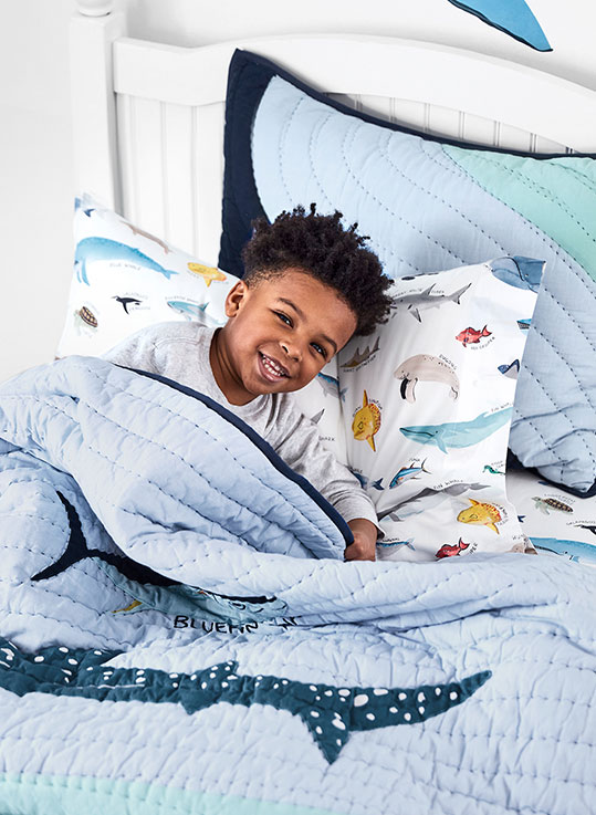 with delightfully thoughtful bedding and art. Designed to
