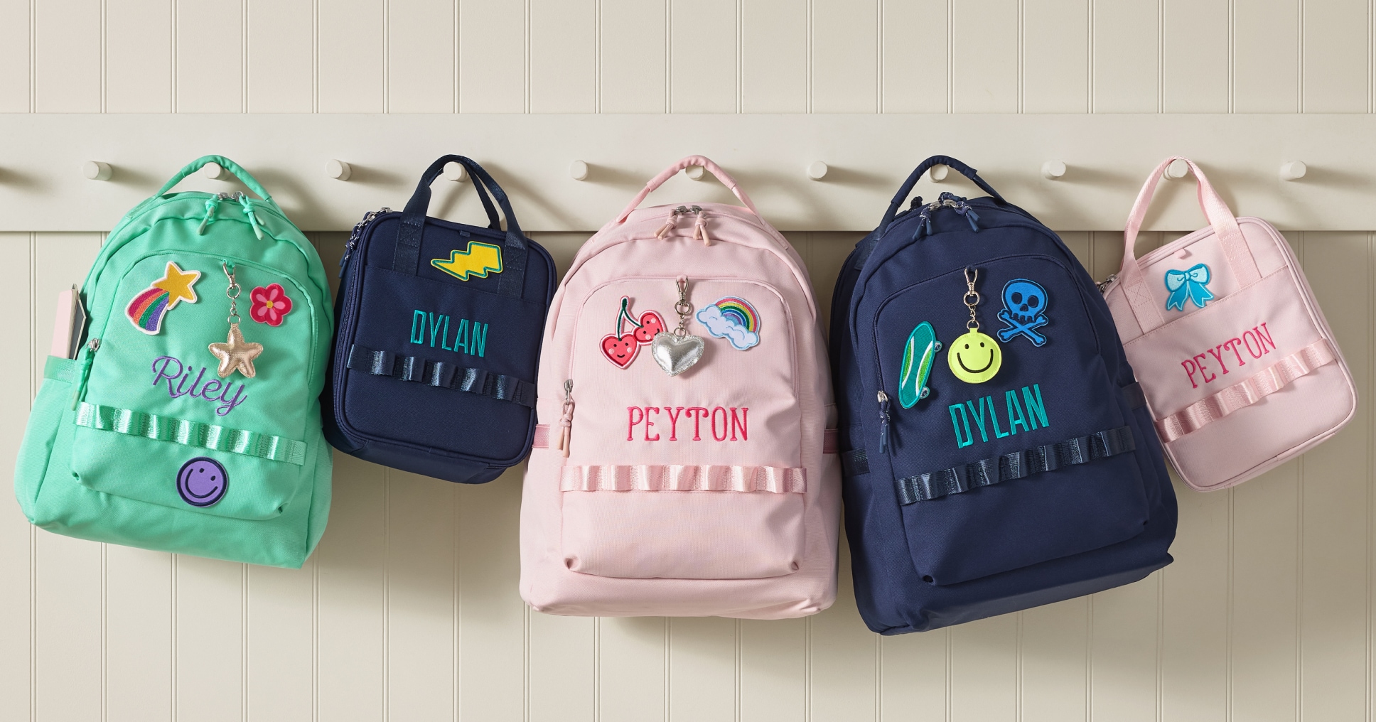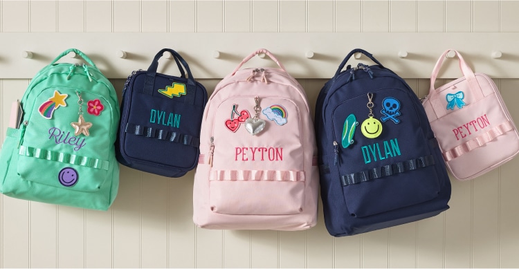 Get packing with streamlined, single-color bags that can be adorned with patches featuring letters or favorite icons.