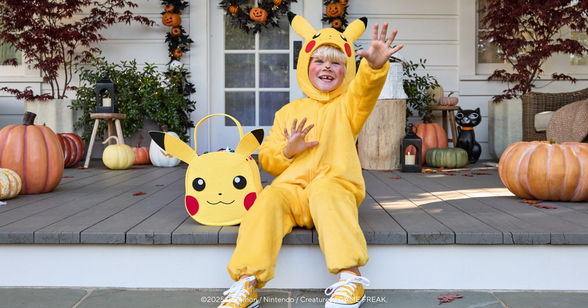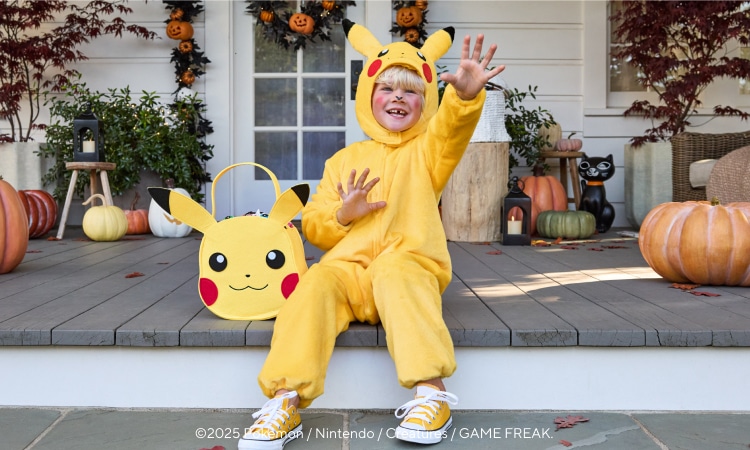 Charge up for candy season with our Pikachu costume and matching treat bag.