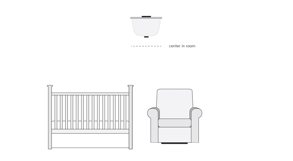 and flushmounts. Floor lighting next to a nursery chair illuminates one-on-one time.