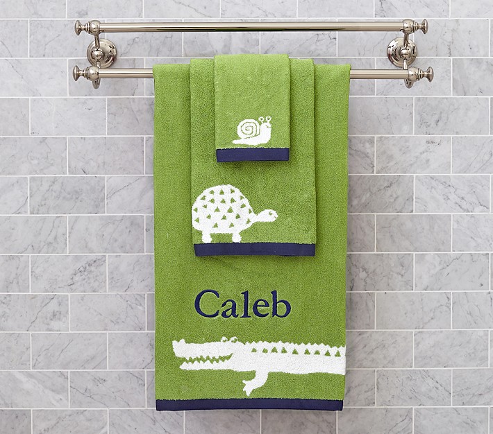 Our alligator towels add whimsy to bathtime.