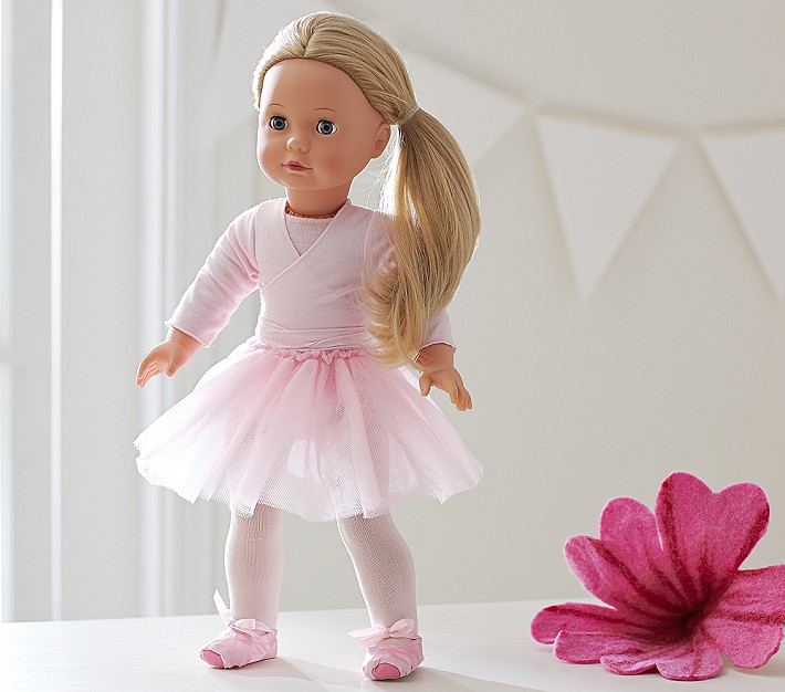 Your child can transform her doll into a beautiful ballerina by dressing her in this detailed tutu ensemble.