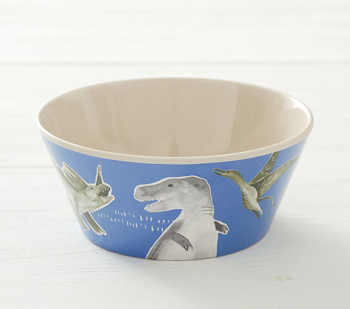 CHOMP! These dinosaurs encourage even the pickiest eaters to try at least one big bite. Crafted of a lightweight, yet durable mix of bamboo and melamine, this bowl is perfect for picnics, on-the-go snacks and everyday meals.