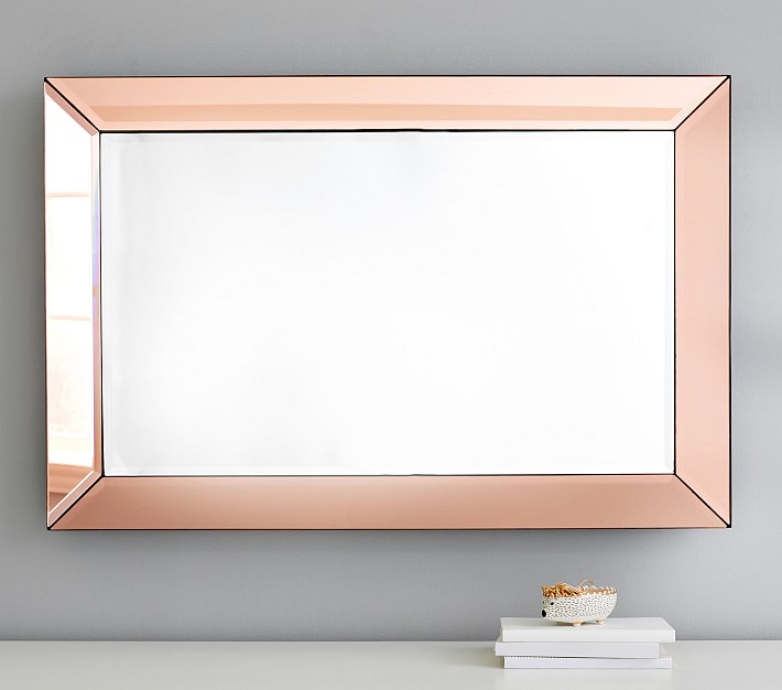 Bring modern glam to their space with our generously sized mirror bordered in beveled metal. With its blush tint and polished gleam, the frame casts its own warm reflection.