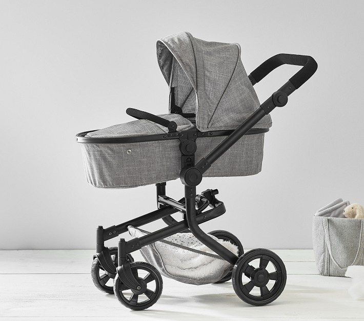 - Stroller converts from pram to carrier to jogging stroller.