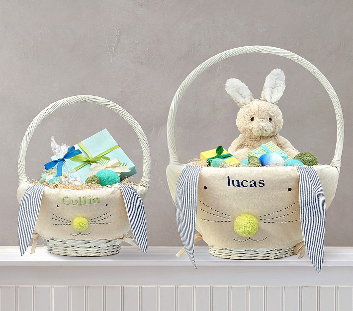 - Liner features two floppy bunny ears in a gingham pattern, satin and pick stitch eyes, whiskers & mouth and a pom pom nose.