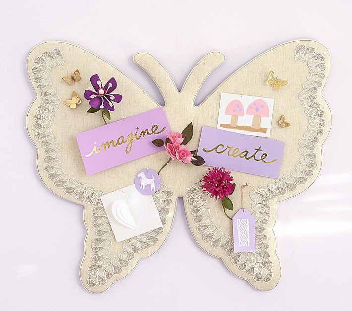 Wall organization and art combine in this pinboard, shaped like an elegant butterfly. With a lace-like border, it's a lovely place to pin cards, photos and more.