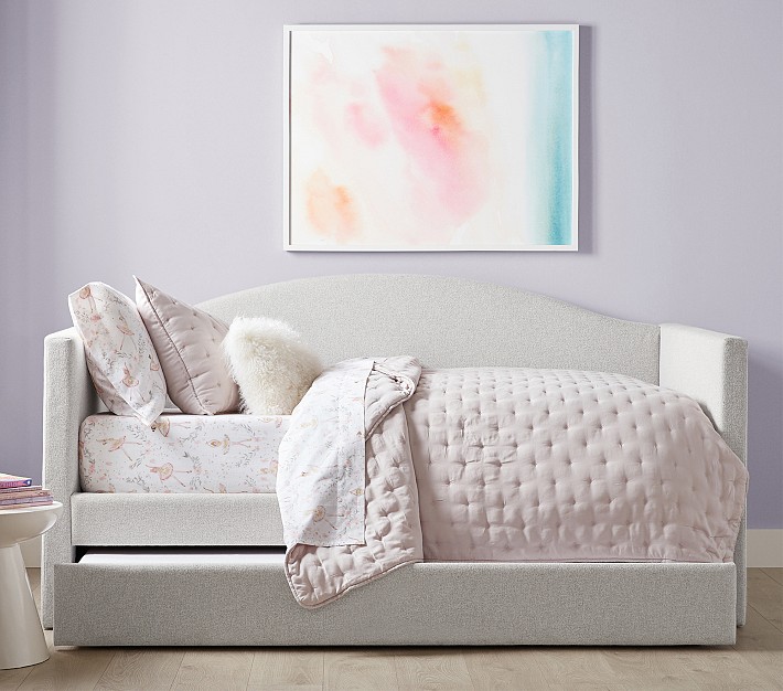 Graceful lines give the Carter Camelback Daybed its classic style, while generous padding makes it comfy and cozy. The wraparound back and arms shelter a deep seat with a roll-out trundle below, which is great for storage or as a guest bed when you add our trundle mattress (sold separately). Masterfully crafted for enduring quality and style, the daybed features a sustainable-wood frame, hand-applied finishes and expertly tailored upholstery.