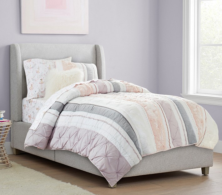 The Carter Wingback Storage Bed adds modern flair to your little one’s space. It’s designed with an ultra-plush, high square back and a worn, vintage fabric look that they’ll adore. Plus, convenient side storage adds functionality for years to come.