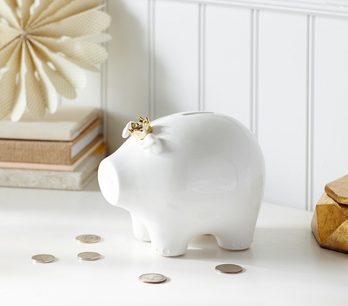 Made from glazed ceramic, this king pig playfully encourages kids to start saving from the youngest age.