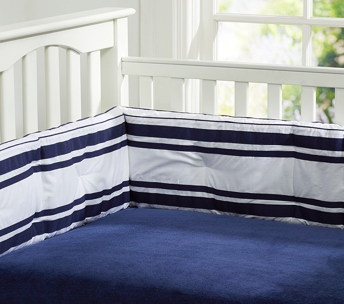 - Bumper ties should always be secured tightly and positioned outside of the crib. When your child is able to pull up to a standing position, crib bumpers should be removed.