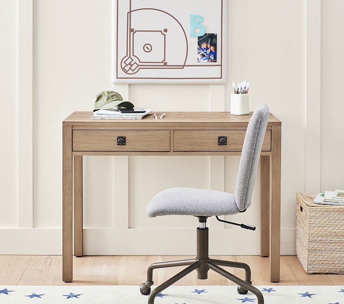 Part of the Charlie Collection, this Craftsman-style desk and hutch set the scene for studying with ample drawer space and shelving. Bold new finishes, antiqued hardware, a solid hardwood frame and phthalate-, BPA- and lead-free construction make it as stylish and long-lasting as it is healthy for your home.