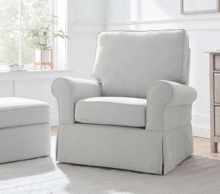 Our comfortable glider and matching ottoman are must-haves for feeding, playing and bonding with your baby. Thick cushioning and a sturdy hardwood frame combine welcoming comfort with strength and longevity. Plus, it's UL GREENGUARD Gold Certified to help contribute to healthier indoor air.