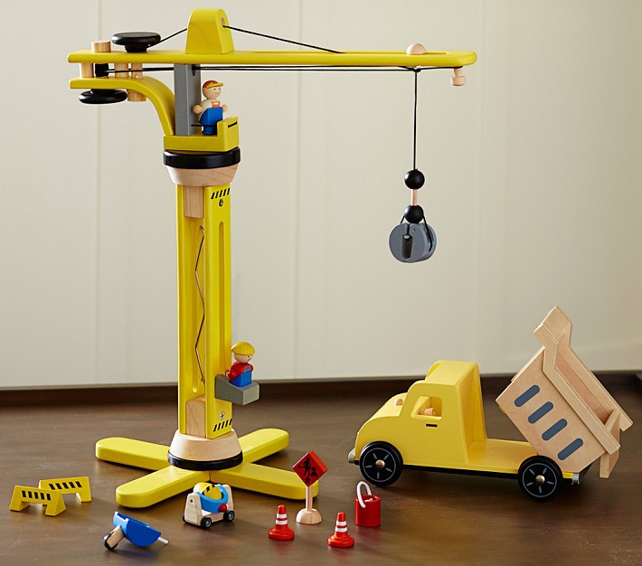 - Truck and crane are crafted of solid wood.