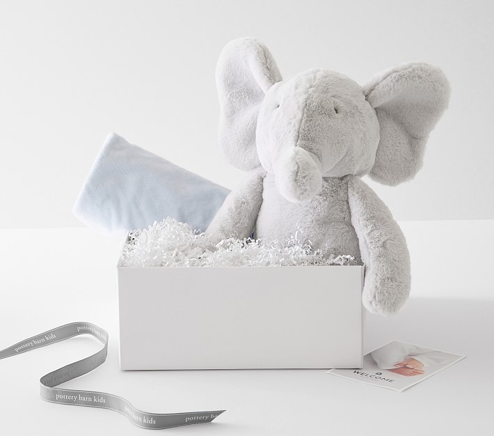 - Medium Elephant Plush: 10.25" wide x 6" deep x 17" high