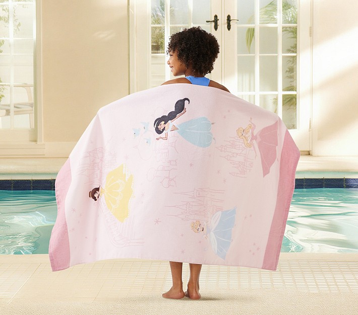 Brightly decorated with all their favorite Disney Princess characters, our kids' beach towel is fit for royalty. Woven of supersoft cotton, this plush terry accessory offers excellent absorption, as well as UPF 50 protection.