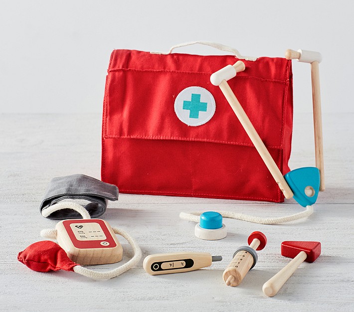 Inspire your little one to become a doctor when they grow up! Our Doctor Kit – complete with a wooden stethoscope, blood-pressure cuff, syringe and more – will let them practice helping and caring for others.