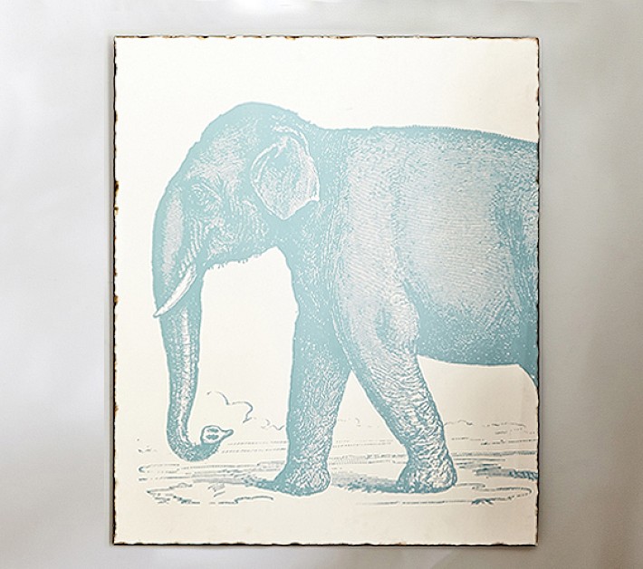 With the fine detail of an etched print, this portrait of an elephant brings an artful element to kids’ spaces.