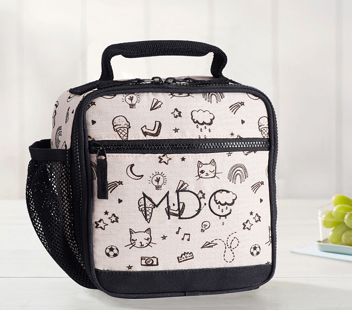 Inspired by playful notebook doodles, this insulated bag packs a sweet, oh-so-glamorous lunch. Designed to keep food fresh and drinks cool, our durable bag is expertly made with the most resilient of materials and boasts padded handles, a water-resistant exterior and plenty of space to fit our food storage containers. Imagined for Pottery Barn Kids by fashion designers Emily Current and Meritt Elliott, it captures their adventurous yet chic aesthetic.