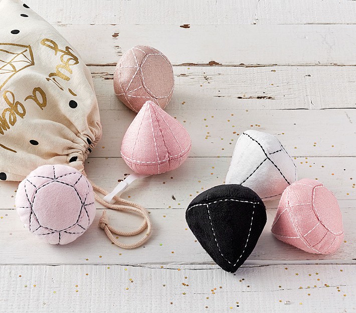 - Comes with a bag which says "you’re a gem!" and 5 soft gem blocks.