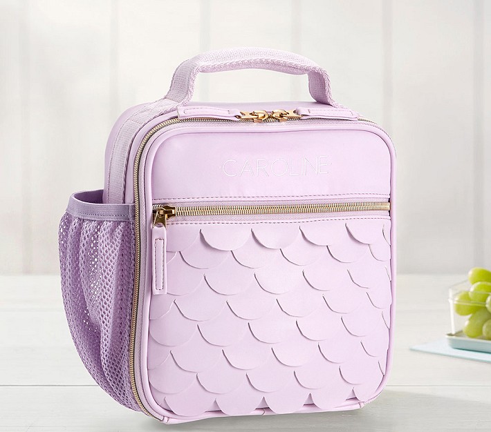 Sweet scalloped details on this backpack bring magical mermaid style wherever your little one goes! An insulated and water-resistant interior ensures that their lunch stays fresh. With an easy-to-carry handle and a mesh interior and exterior pocket, this is a chic lunch time must-have. Imagined exclusively for Pottery Barn Kids with fashion designers Emily Current and Meritt Elliott, this lunch bag captures their enchanting and glamorous aesthetic.