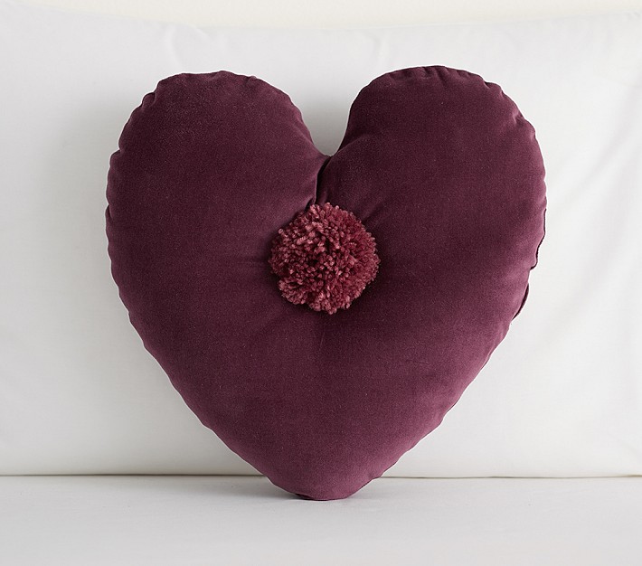 | The Emily & Meritt Velvet Heart Pom Pillow, 15x14, Berry | No Longer Available |