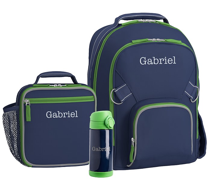 | Fairfax Solid Navy/Green Trim Bundle, Large Backpack, Classic Lunch Box, & Water Bottle | No Longer Available |
