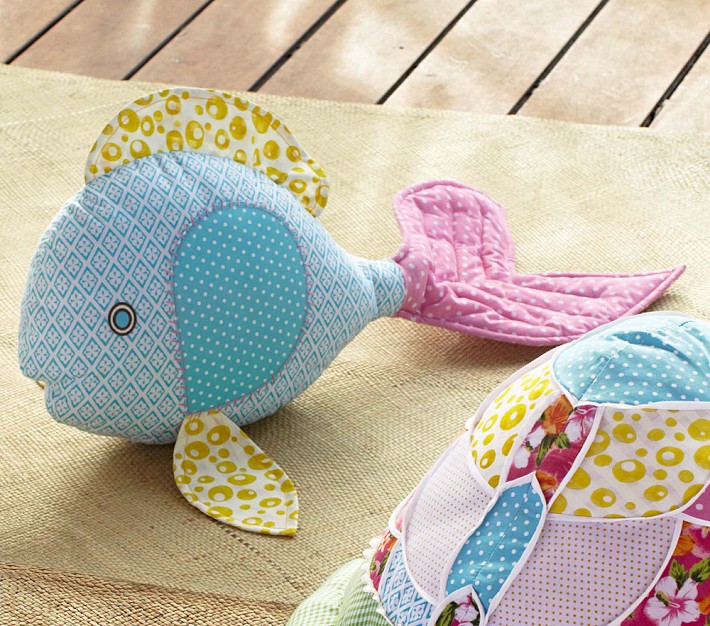 Bring a splash of summer color to your child’s room with the fun shapes and eclectic fabrics of our ocean-themed plush toys. Our fish is sewn from a medley of pretty cotton prints to coordinate beautifully with our bedding collections.