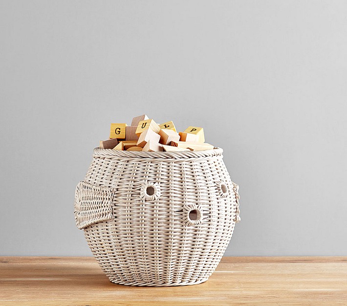 Storage has never been more playful! Woven in the shape of a friendly fish, this hand-made rattan basket adds lovable under-the-sea design to your child's decor.