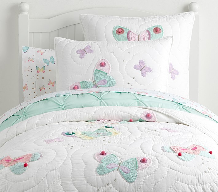 Your little one will flutter off to a good night’s sleep tucked under our Gigi Butterfly Quilt. Featuring charming appliqués like pom-poms and sequin embroidery, this hand-quilted must-have brings beauty and whimsy to their sleep space. Plus, it’s STANDARD 100 by OEKO-TEX® Certified to be both safe and chemical-free for a healthier night’s sleep.