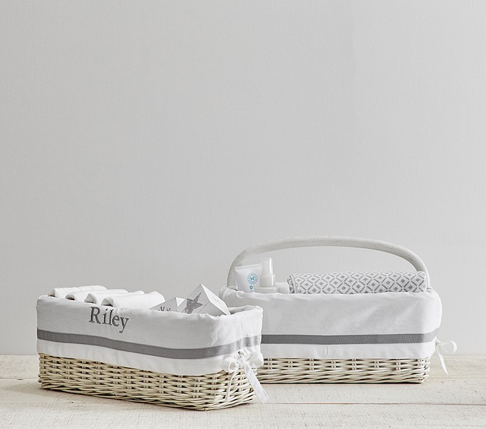The natural beauty and strength of rattan keeps your baby necessities organized and within easy reach. Accented with colorfully striped liners, these stylish storage pieces also make thoughtful gift baskets for new moms.