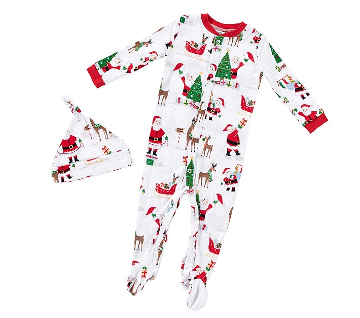 Bundle up your snuggle bug in our ultrasoft cotton one-piece and matching hat featuring a jolly Santa Claus getting ready for Christmas Day. The one-pieces's collar-to-toe buttons makes changings easy so you can focus on celebrating.