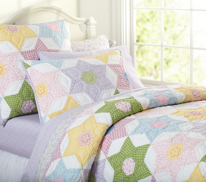 A vintage find from the 1920s inspired this heirloom-quality quilt. Each star-shaped panel is hand pieced from the finest colorfast cottons.