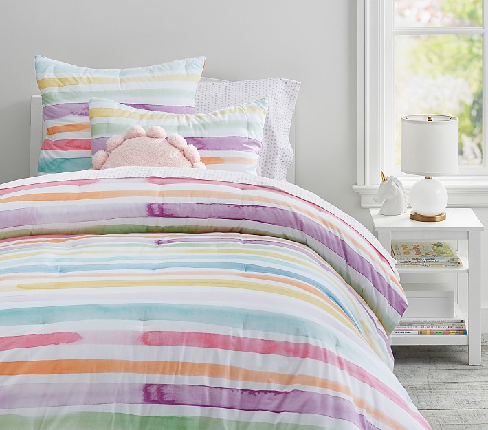 Usher them into sweet dreams with this striped comforter and shams. Made of 100% cotton percale, they'll be comfy and cozy all night long.
