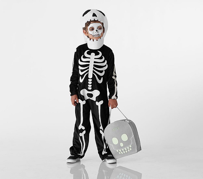 | Glow-in-the-Dark Skeleton Kids' Costume with Felt Skull Treat Bag, 4-6Y | No Longer Available |