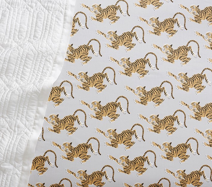 Woven from soft-to-the-touch pure organic cotton percale, this Lainey Crib Fitted Sheet features an allover crouching tiger print to add a fierce look to their sleeping space. It’s fade-resistant so the black and orange tiger stripes stay vibrant wash after wash.