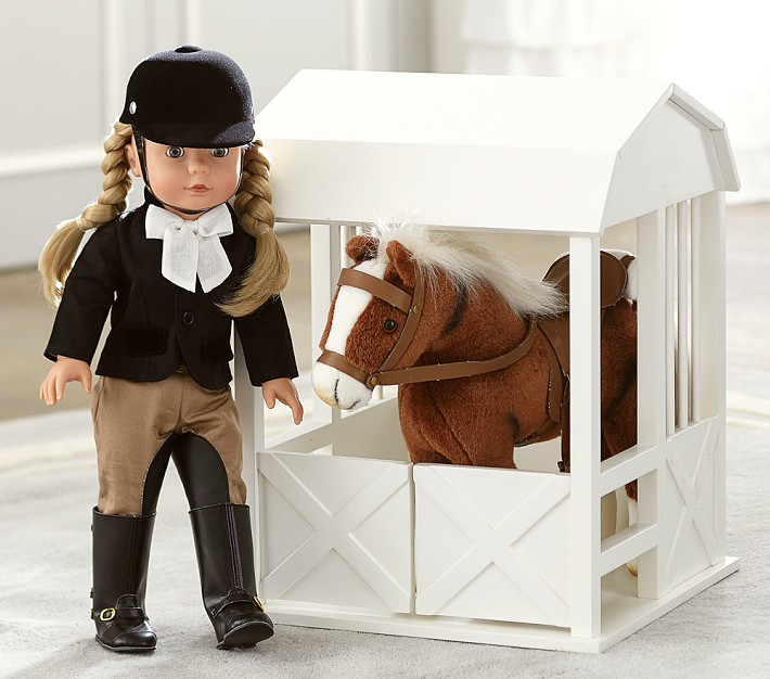 This limited edition, collectible-quality doll celebrates all things equestrian. Crafted exclusively for Pottery Barn Kids by world-renowned doll manufacturer, Götz, she comes dressed in an authentic riding-tournament outfit, which includes a riding hat, jacket, shirt, pants and boots.
