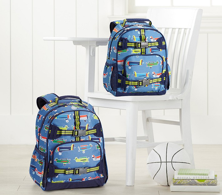 Durable, functional and oh-so-playful, our sturdy, roomy Mackenzie backpacks are packed with pockets, straps and gear loops to keep everything in place. Made of water-resistant polyester and featuring adjustable padded shoulder straps, exterior straps to hold a Mackenzie lunch bag and exterior side pockets fitted to our water bottles, it's the most efficient and playfully designed collection around. Personalize it with their name or initials for a smart, extra-special touch.