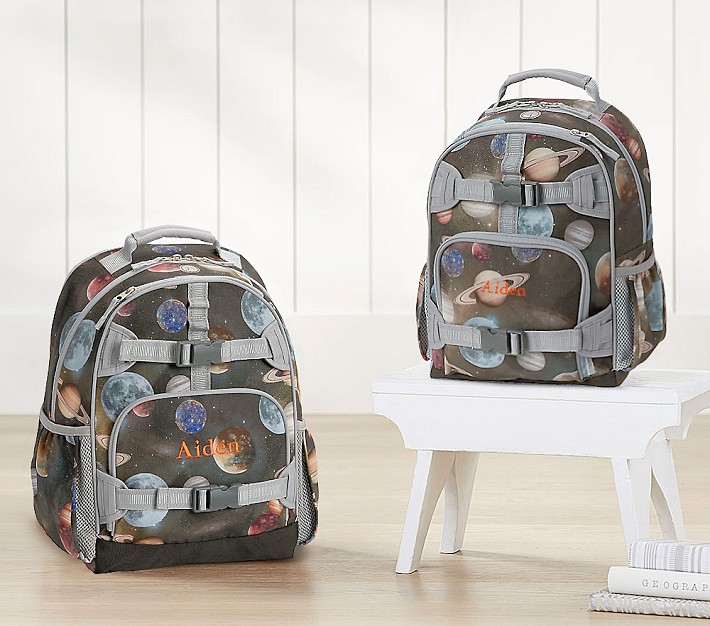 Durable, functional and oh-so playful, our sturdy, roomy Mackenzie backpacks are packed with pockets, straps and gear loops to keep everything in place. Made of water-resistant polyester and featuring adjustable padded shoulder straps, exterior straps to hold a Mackenzie Lunch Bag and exterior side pockets fitted to our water bottles, it's the most efficient and playfully designed collection around. Personalize it with their name or initials for a smart, extra-special touch.
