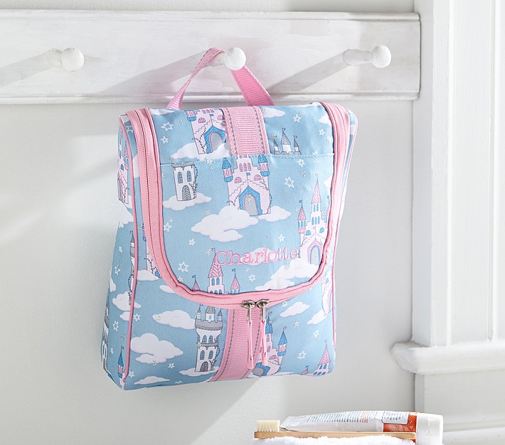 Our kid-friendly toiletry bags keep overnights and family trips organized. This colorful design is built strong with pockets inside for all the essentials, a handle for carrying and an easy-open flap.