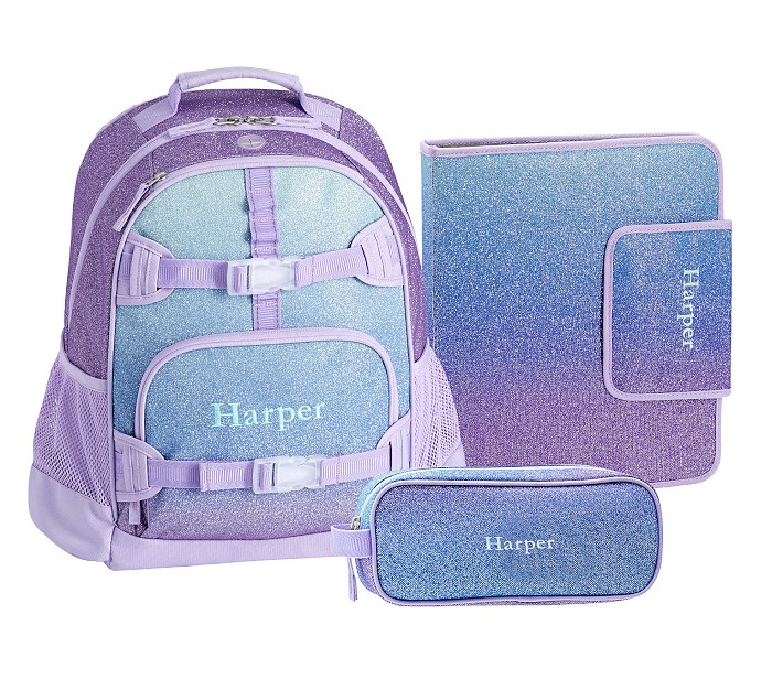 | Lavender/Aqua Ombre Sparkle Glitter Bundle, Large Backpack, Homework Holder, & Pencil Case | No Longer Available |