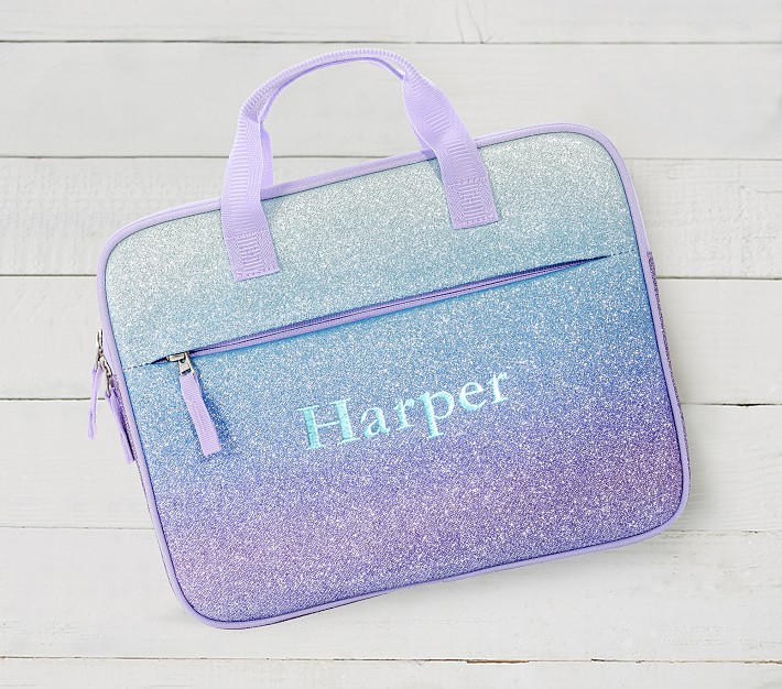 At home and on the go, kids can safely stow their must-have devices in our Mackenzie Tablet Case. Durable and water-resistant, the 600-denier polyester is padded to help absorb bumps lined with soft velour. Along with a rugged double-zippered top, it has an outside zip pocket and webbing handles with ultra-strong reinforced stitching. Personalize it with their name or initials for an extra-smart touch.