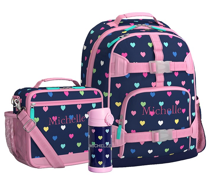 | Navy/Pink Multi Hearts Bundle, Large Backpack, Cold Pack Lunch Box, & Water Bottle | No Longer Available |